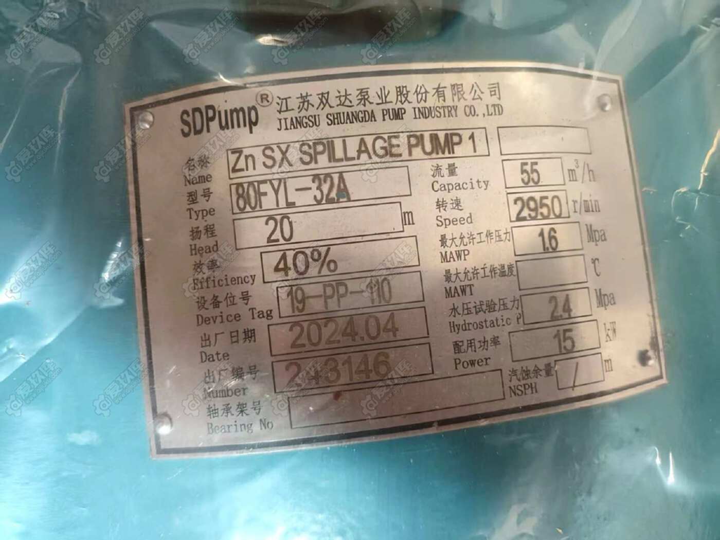 出售地坑泵,输送酸性溶液,流量55m3/h 扬程20m 材质316